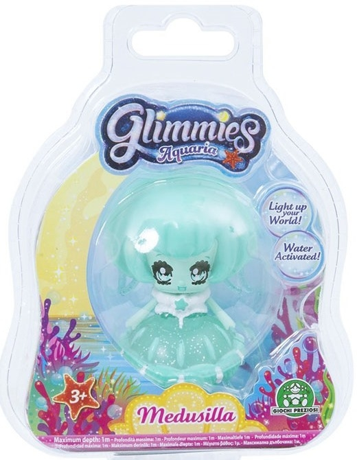 Glimmies Aquaria 1 κούκλα Δημιούργησε τον δικό σου υποθαλάσσιο κόσμο γεμίζοντας το Glimsplash με νερό. Μόλις τοποθετήσεις τα Glimmies Aquaria στο νερό και δες τα να φωτίζουν μαγικά.