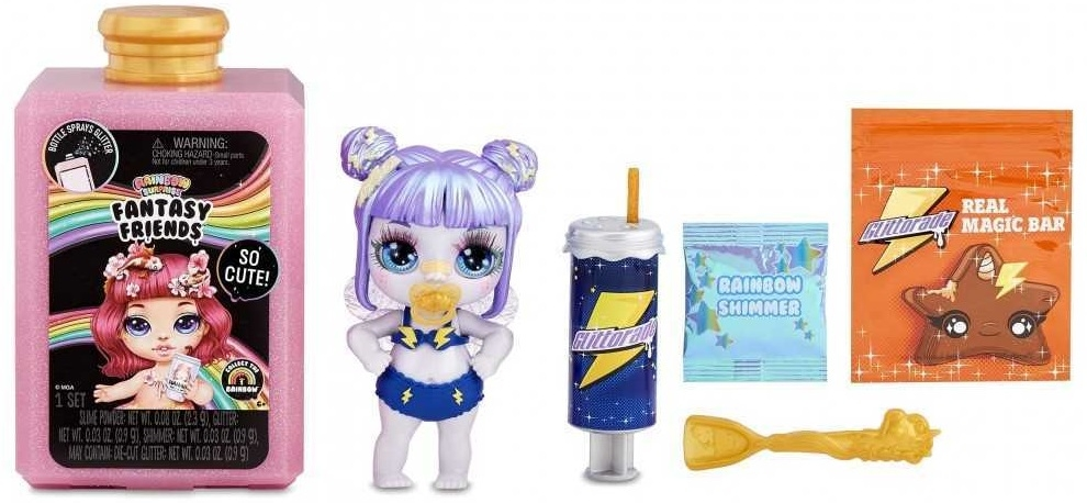 Poopsie Rainbow Fantasy Friends Mίνι κούκλες, αξιολάτρευτες και μαγικές μέσα σε ένα κουτί αρώματος, καλυμμένο με χλαπάτσα! Πιέζοντας το πάνω μέρος της συσκευασίας του αρώματος, πασπαλίζουμε μια ξαφνική λάμψη! Στο εσωτερικό, θα βρείτε μια κούκλα Rainbow Surprise με βλεφαρίδες, υπέροχα, λεπτομέρειες, μαγεία και πολλές εκπλήξεις. *Η επιλογή γίνεται τυχαία