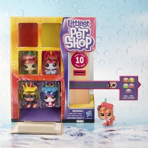 Littlest Pet Shop vending machine Πολύχρωμα και διασκεδαστικά κατοικίδια ζωάκια. Ειδική συσκευασία, που μοιάζει με μηχάνημα αυτόματου πωλητή, “διανέμει” τα κατοικίδια ζωάκια με θέμα τα ποτά και τα αντίστοιχα αξεσουάρ τους. Η συσκευασία περιλαμβάνει 5 μικρές φιγούρες κατοικίδια ζωάκια και 5 αξεσουάρ. Όταν διψάς για φρέσκα, πολύχρωμα και διασκεδαστικά κατοικίδια…