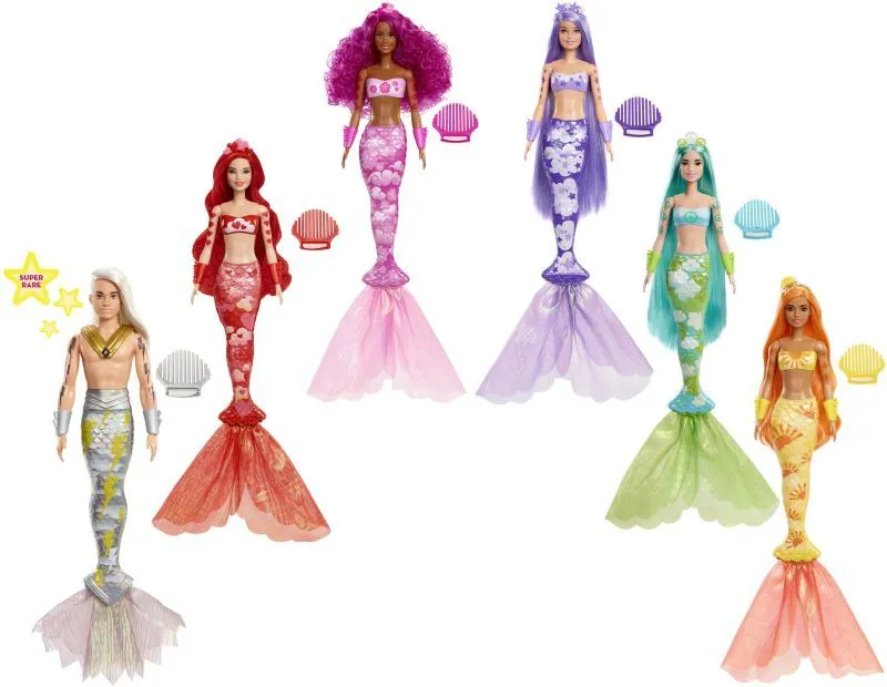 Barbie Color Reveal Γοργόνες Οι κούκλες Barbie Color Reveal Innovation κρύβουν πολλές μαγικές εμπειρίες με επτά εκπλήξεις, ανάμεσά τους και μια κούκλα με εμφάνιση γοργόνας που παραμένει ένα μυστήριο μέχρι να αποκαλυφθεί με τη βοήθεια του νερού! Η συσκευασία αποτελεί κι αυτή μέρος της διασκέδασης. Για να ανακαλύψετε ποια κούκλα…