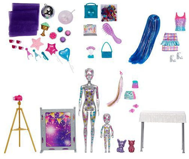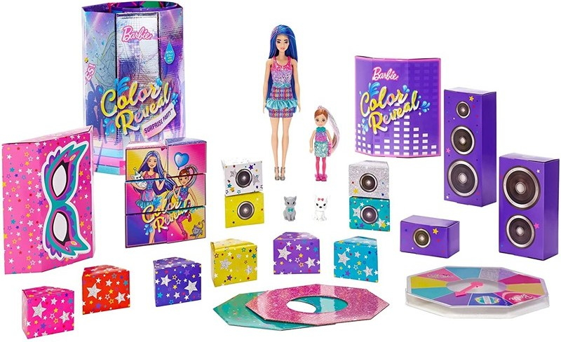 Barbie Color Reveal Holiday Set Αυτό το σετ Barbie® Color Reveal™ κρύβει περισσότερες από 50 εκπλήξεις, όπως μία κούκλα Barbie® και μία κούκλα Chelsea™ με ασημί μεταλλική εμφάνιση με πολύχρωμα κομφετί αστέρια, και δύο ζωάκια Color Reveal™ με μεταλλικό ροζ και μωβ χρώμα! Ανοίξτε το σετ για να αποκαλύψετε ένα…