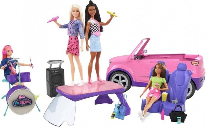 Barbie Μουσική Σκηνή Και SUV Αυτοκίνητο Barbire τύπου SUV που μετατρέπεται σε μουσική σκηνή εμπνευσμένη από την νέα ταινία Barbie: Big City, Big Dreams. *ΠΡΟΣΟΧΗ: Οι κούκλες δεν περιλαμβάνονται στη συσκευασία.