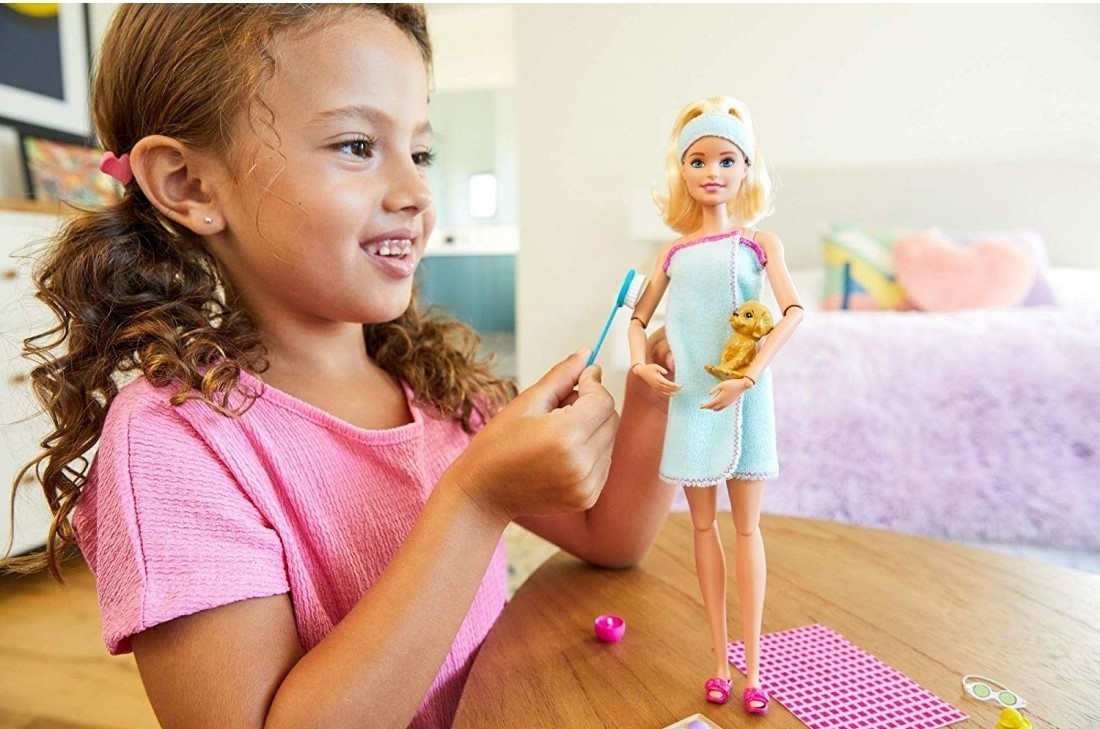 Barbie Welliness Ημέρα Ομορφιάς Σπα Η Barbie® ξέρει πως για να είσαι καλά πρέπει να φροντίζεις τον ευατό σου! Αυτά τα σετ εμπνέουν τα παιδιά να παίξουν διαφορετικές ιστορίες με μία κούκλα, ένα σκυλάκι και θεματικά αξεσουάρ. Διαλέξτε μεταξύ τριών θεμάτων: σπα, γυμναστική και χαλάρωση. Κάθε κούκλα Barbie φοράει άνετα…