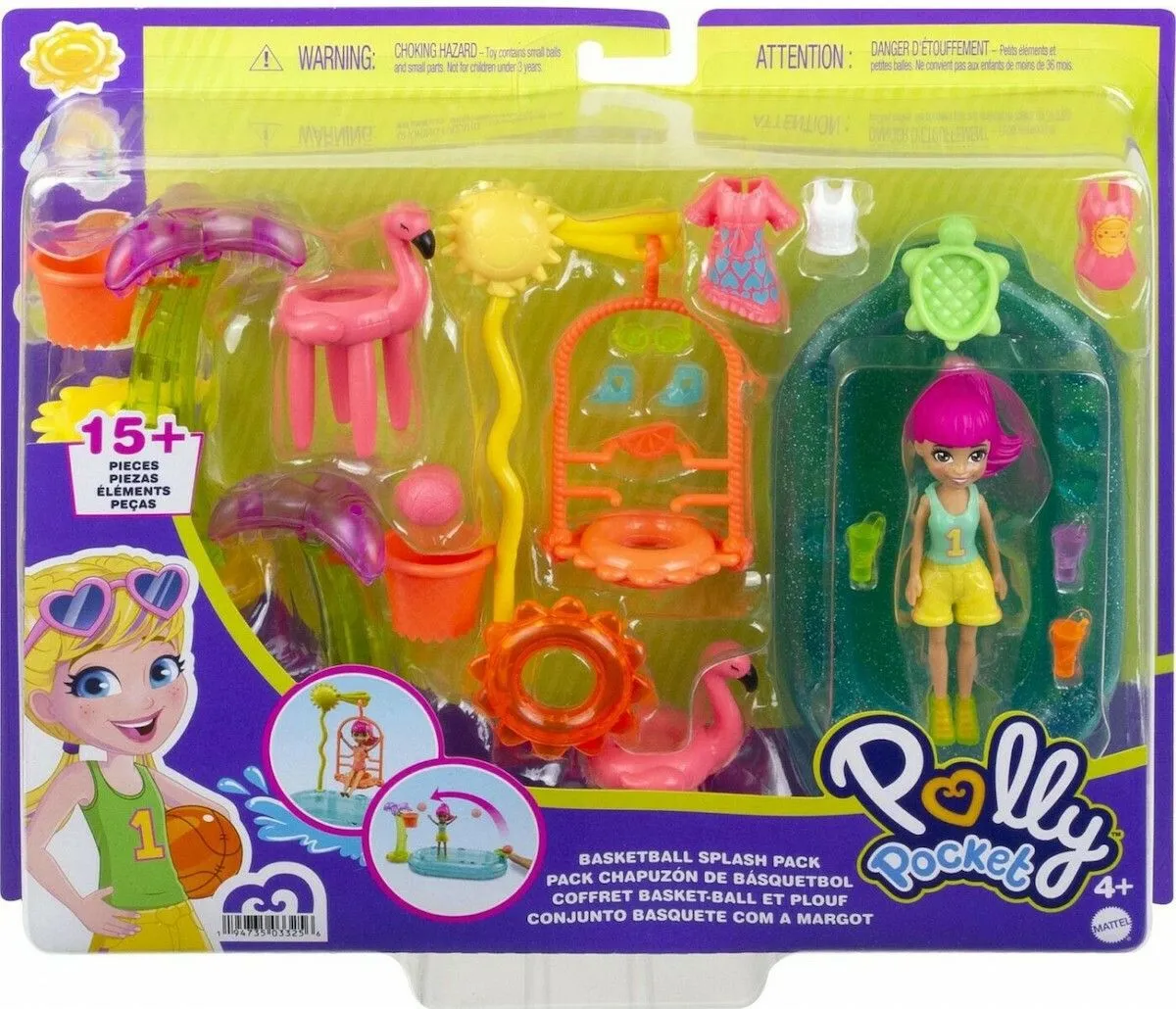 Mattel Polly Pocket Κούκλα Με Ρούχα Και Αξεσουάρ κολύμβησης Και Άθλησης- Basketball Splash Pack (HDW62)