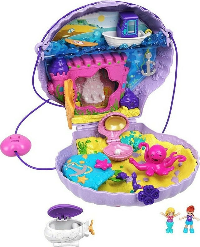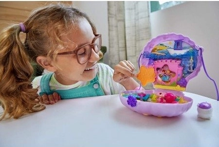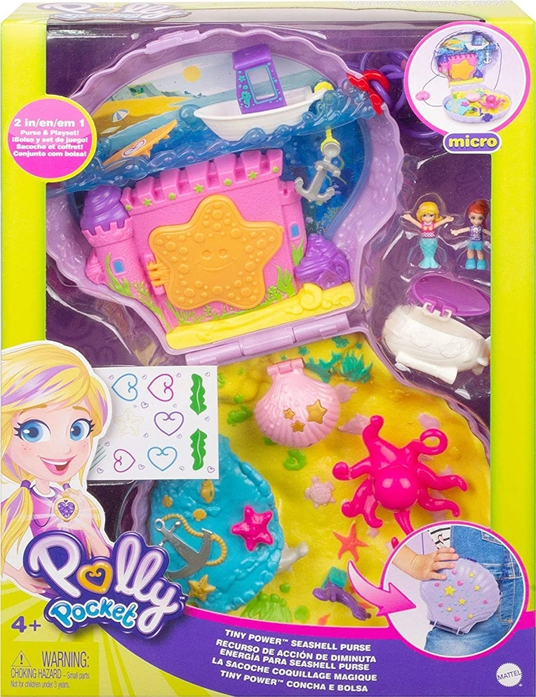 Polly Pocket Mini Τρέντι Τσαντάκι Seashell Purse Τσαντάκι που ανοίγει και αποκαλύπτει 2 κούκλες, 8 διασκεδαστικές λεπτομέρειες, 2 αξεσουάρ και αυτοκόλλητα. Με λουράκι που κρεμιέται στον ώμο ή φοριέται στη μέση. Με τεχνολογία Polly Stick™, οι μικρές κούκλες μπορούν να κολλήσουν σε οποιοδήποτε σημείο της θήκης. Από 4 ετών+.