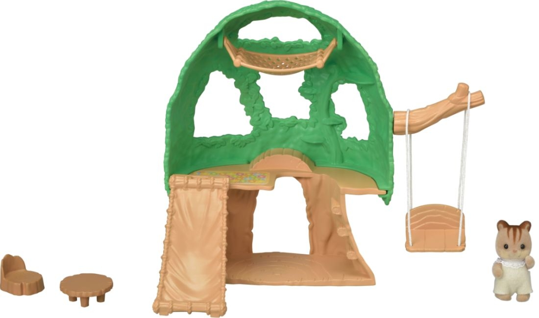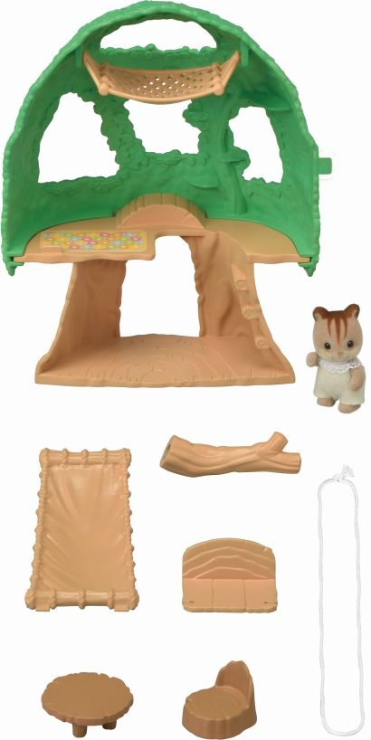 Sylvanian Families: Baby Tree House Περιλαμβάνει •Δεντρόσπιτο για φιγούρες μωρά, •μία φιγούρα: μωρό Walnut Squirrel •κούνια, τσουλήθρα, αιώρα.