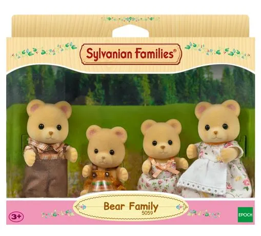 Sylvanian Families bear Family Σετ μινιατούρες. Η οικογένεια Bear αποτελείται από μητέρα, πατέρα, κορίτσι και αγόρι με ταρουχαλάκια τους. Μέγεθος Υ:19cm. Για ηλικίες 4 ετών και άνω.