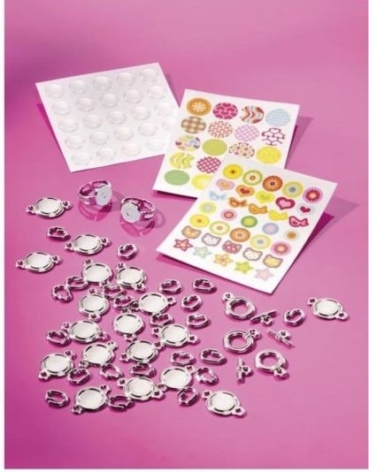 Totum κατασκευή βραχιολάκια Glossy Κάντε βραχιόλια και δύο δαχτυλίδια με αυτό το σετ Totum. Μπορείς να τα φορέσεις ή να δώσεις ως δώρο σε κάποιον. Περιλαμβάνει: •1 φύλλο με διαφανή αυτοκόλλητα 3D •Διάφορα φύλλα με αυτοκόλλητα •2 δαχτυλίδια •Μέρη για βραχιόλι •οδηγίες